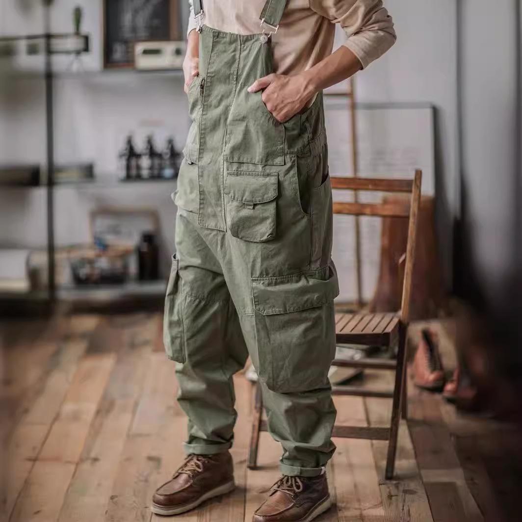 Salopette Vintage Homme Coton Coupe Relaxed Pantalon Cargo Combinaison Mode Vêtement de Travail Combinaison Ample avec Poches cm vert