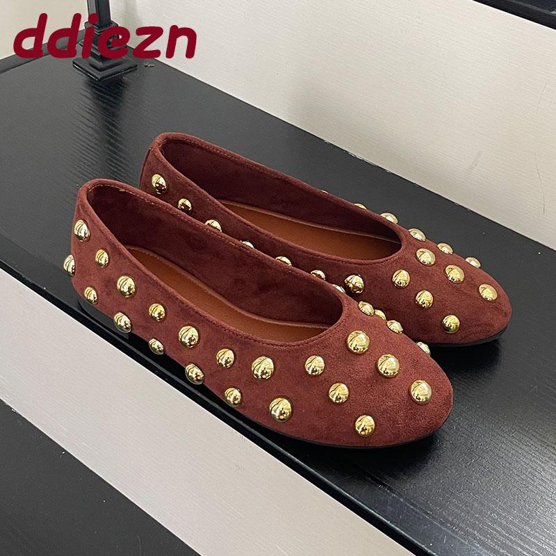 Mote Luksus Mote Metallnitter Dame Ballerinaer Slip On Sko Dame Grunne Fottøy Rund Tå Dame Ballerinaer Sko Stor Størrelse 43 cm Svart