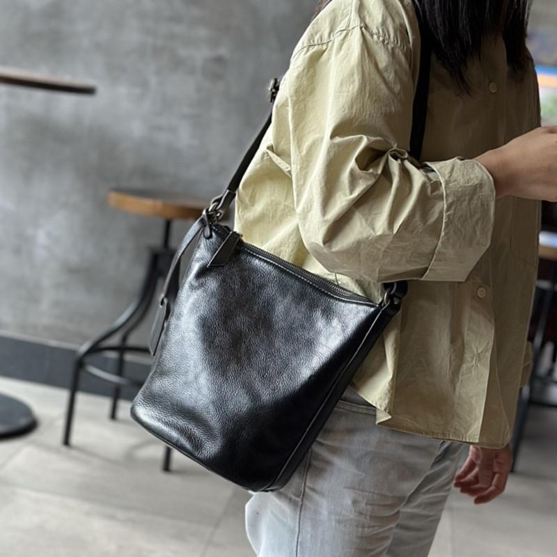 Johnature Simple En Cuir Véritable Femmes Sacs À Bandoulière Et Bandoulière Naturel Véritable Peau De Vache Grande Capacité Casual Sac Seau marron