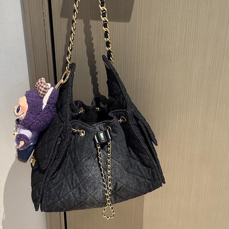 2025 Nieuwe Geur Denim Trekkoord Oksel Hobo Tas Vintage Casual Diamantruit Ketting Handtas Schoudertas