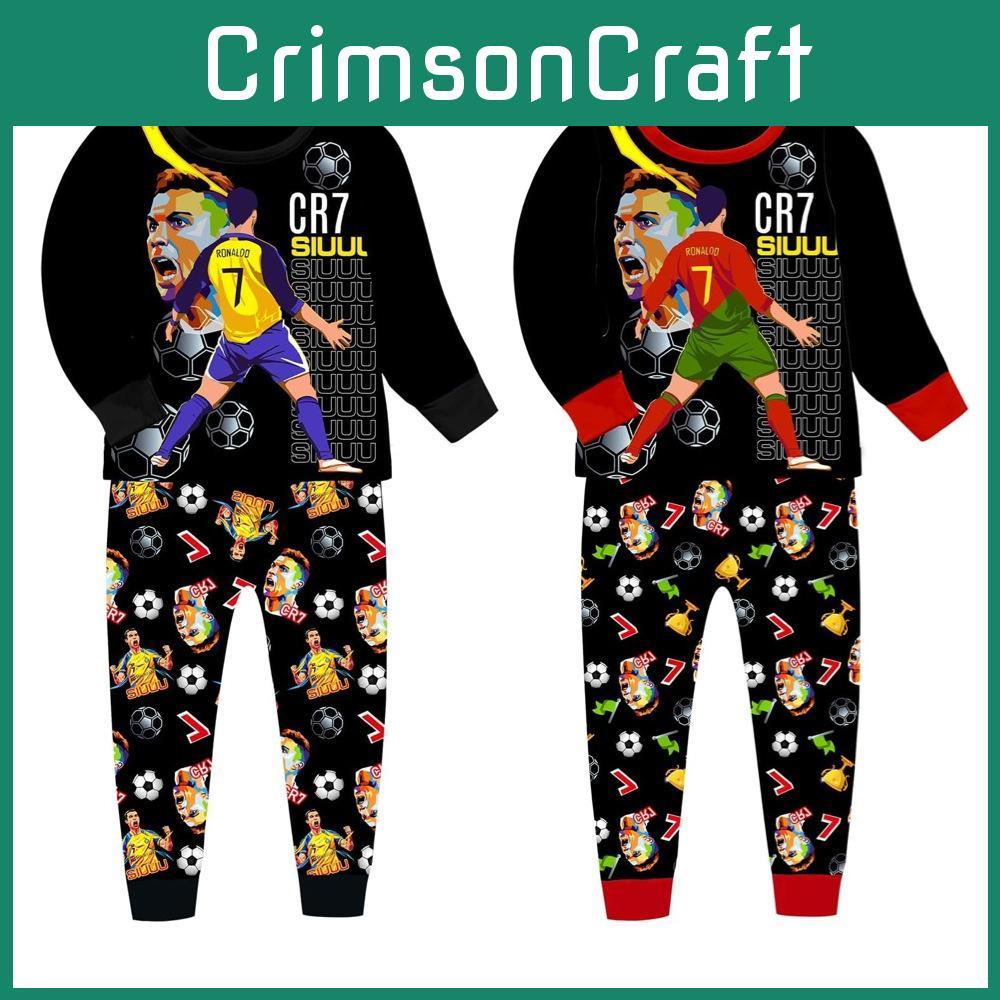 Cr7 Barne Mønster Langermet Bukse Pyjamas Sett Nattøy Mote Klær 110cm