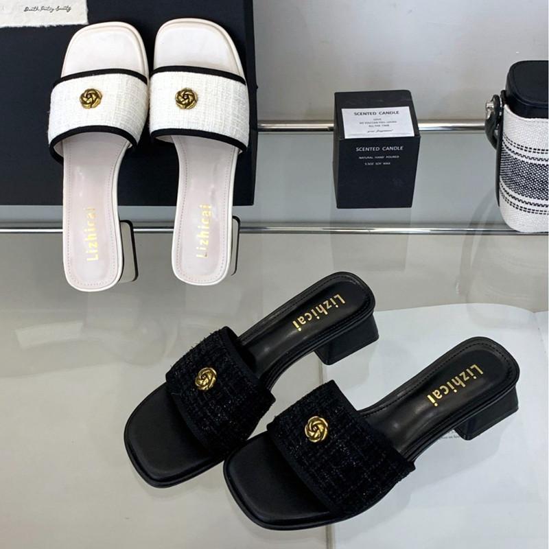 Mote Sommer Designer Kraftig Hæl Åpen Tå Dameslippers Kile Firkantet Hæl Komfortable Slidesandaler Sandalias De Mujer Sommer 2025 cm Svart