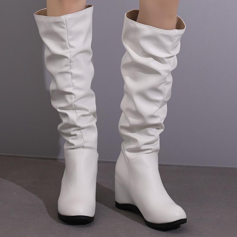 Kile Høye Støvletter Dame V vintersko Høydeøkende Lang Støvel Mote Plissert Svart Hvit Fottøy Sko Dame Casual cm Hvit