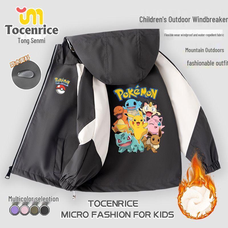 Barnjacka med huva i Pokemon-fleece - Snygg vår/hösttrend för pojkar 130cm