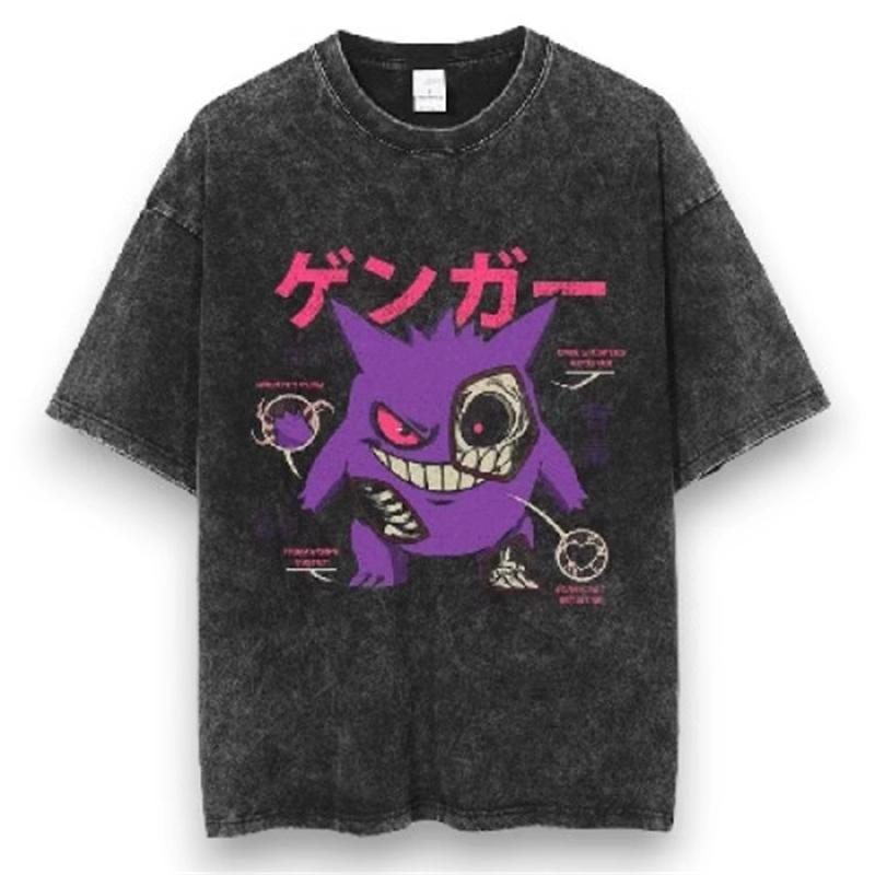 Pokemon Anime Retro Spłowiony T-shirt Bawełniany Męski i Damski Letni Nowy Produkt T-shirt Plus Size Luźny Casualowy Top z Krótkim Rękawem cm