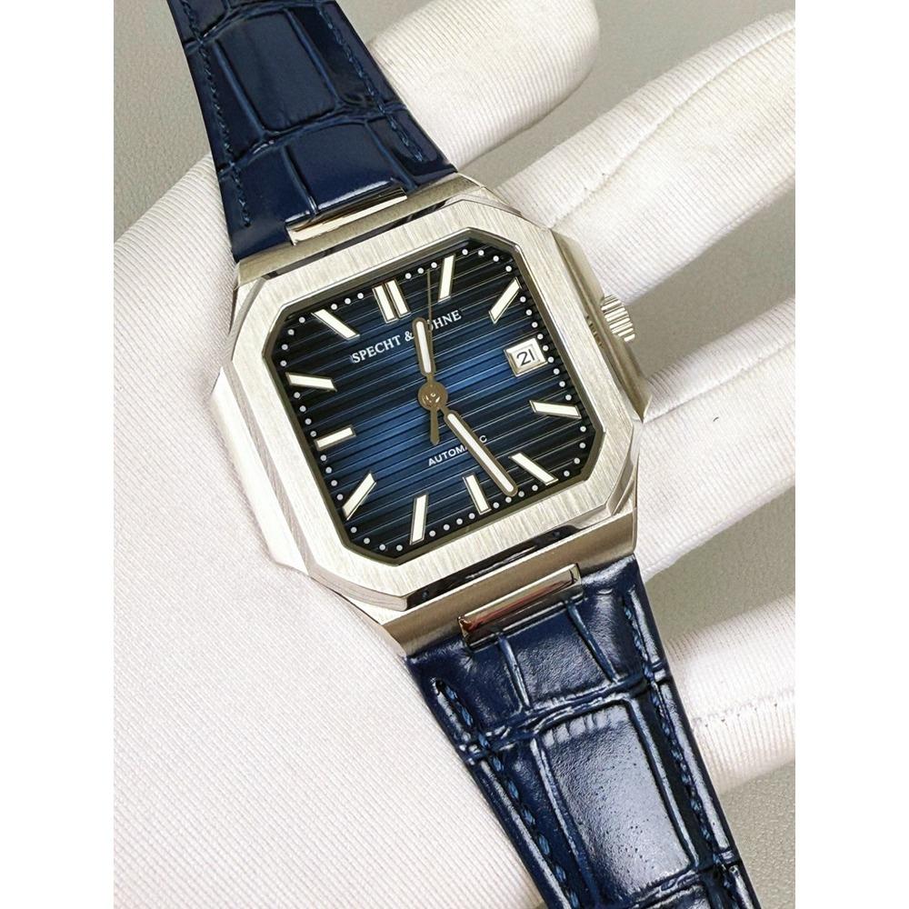 Specht & Söhne 2025 Ny Lyx Herrklocka 41MM Roséguld Automatisk Mekanisk Armbandsur Äkta Läder Sportklockor 5Bar svart