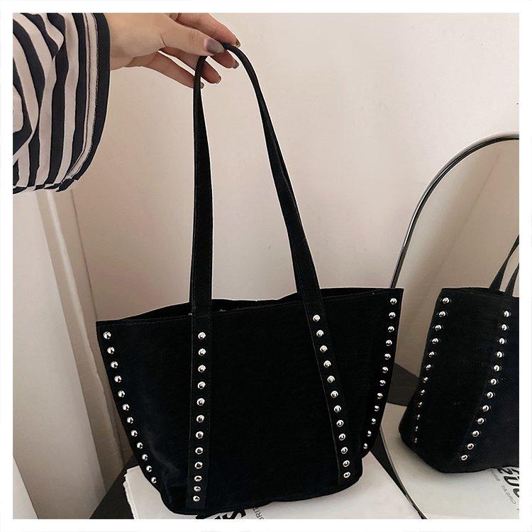 2025 ny høst- og vintermote semsket skinn tote bag high-end avslappet nisje skulderveske kvinners stor veske Svart