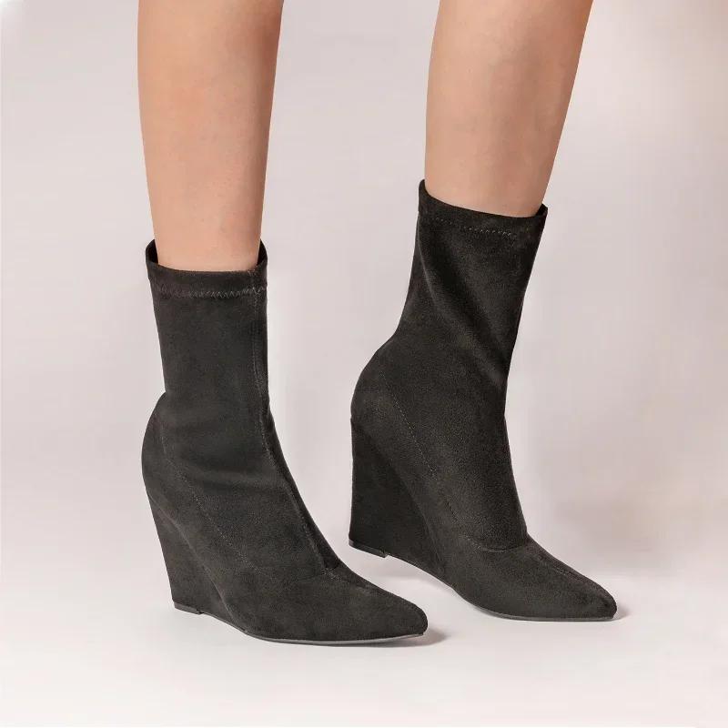 Fashion Women Wedge Ankle Boots Women Autumn Winter New Lace Up Chunky Platform Elastic Boots Woman Pointed High-heeled Botas Mujer 202 9 black