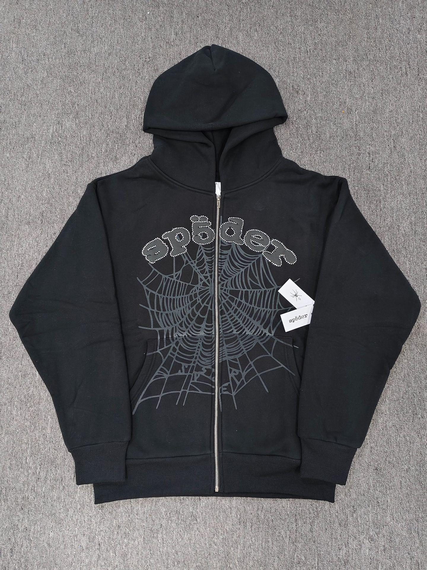 Cardigan de sport à fermeture éclair avec imprimé araignée: Sweat à capuche homme tendance coupe ample cm