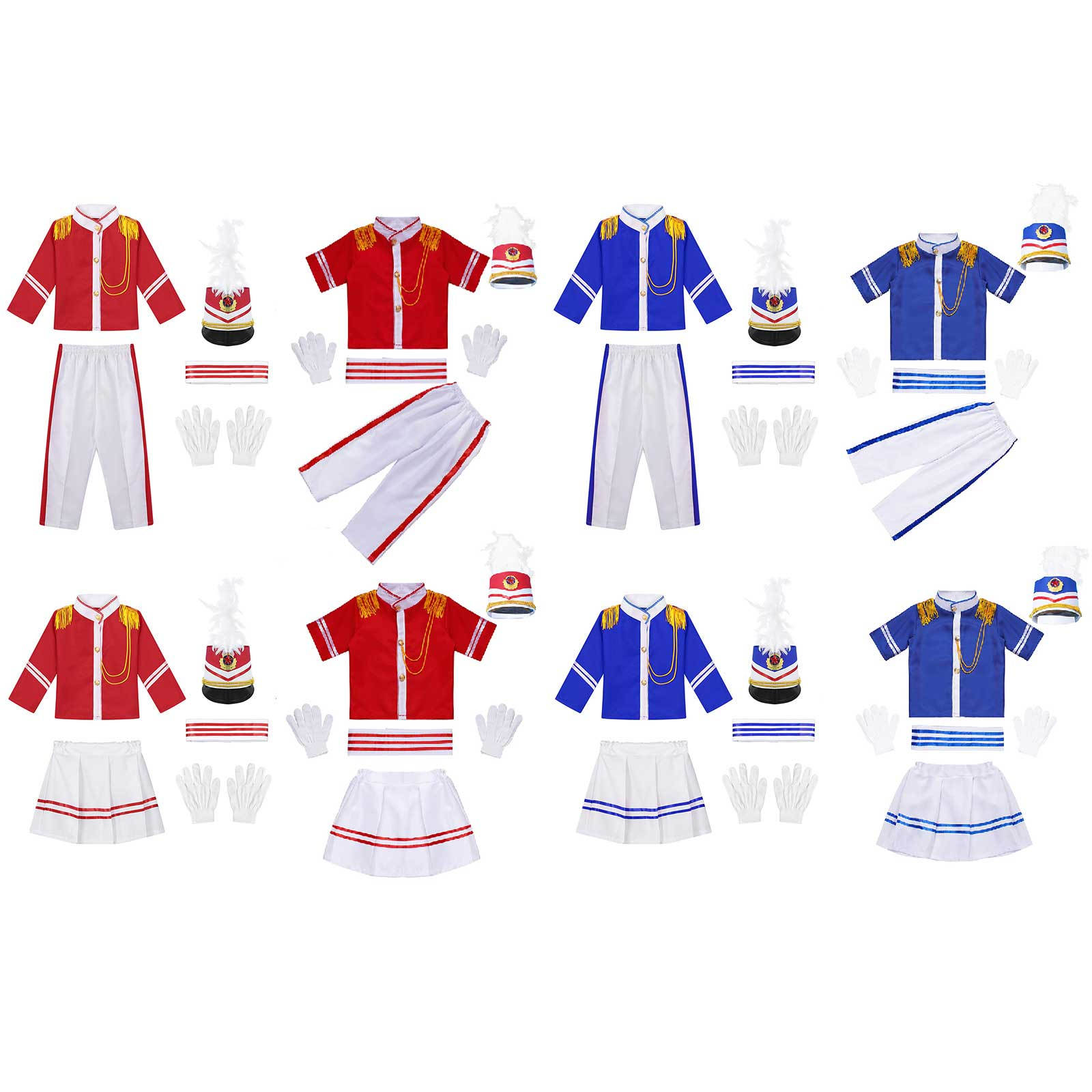 4 stuks Tops met lange mouwen met broek Geplooide rok Veerversiering Hoed Handschoenen Tailleband 4-delige sets Unisex Drum Trompet Team Kostuum Erewa
