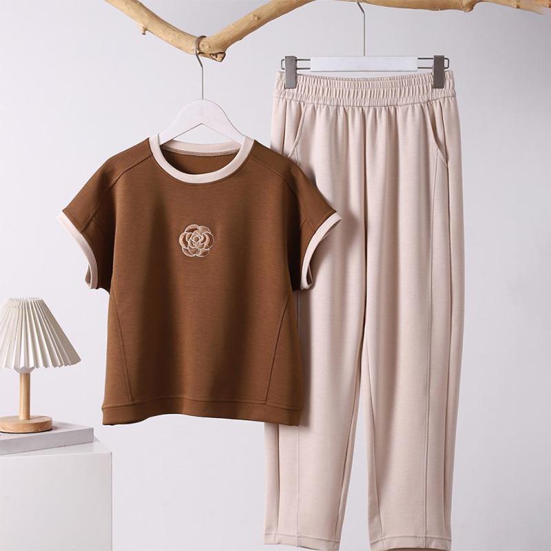 2 stk Sommerdrakt Dame T-skjorte Bukser To-delt Komfortabel Kortermet Topp og Langbukser Løs Avslappet Drakt cm brun