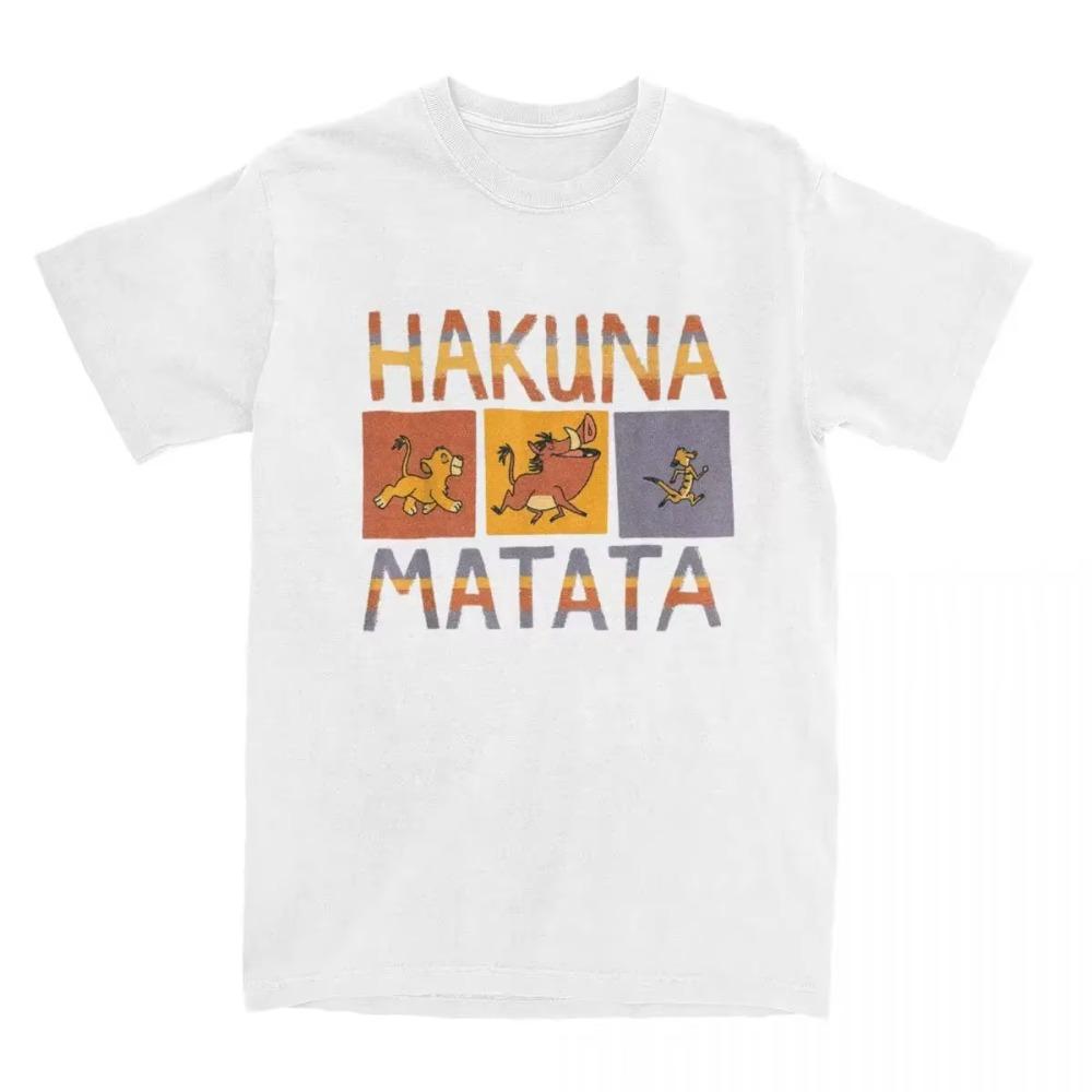 Herr Dam T-shirt Hakuna Lejonkungen Matata Solida Block Vintage T-shirts Kortärmad T-shirt Bomull Ren Bomull Original Toppar cm svart