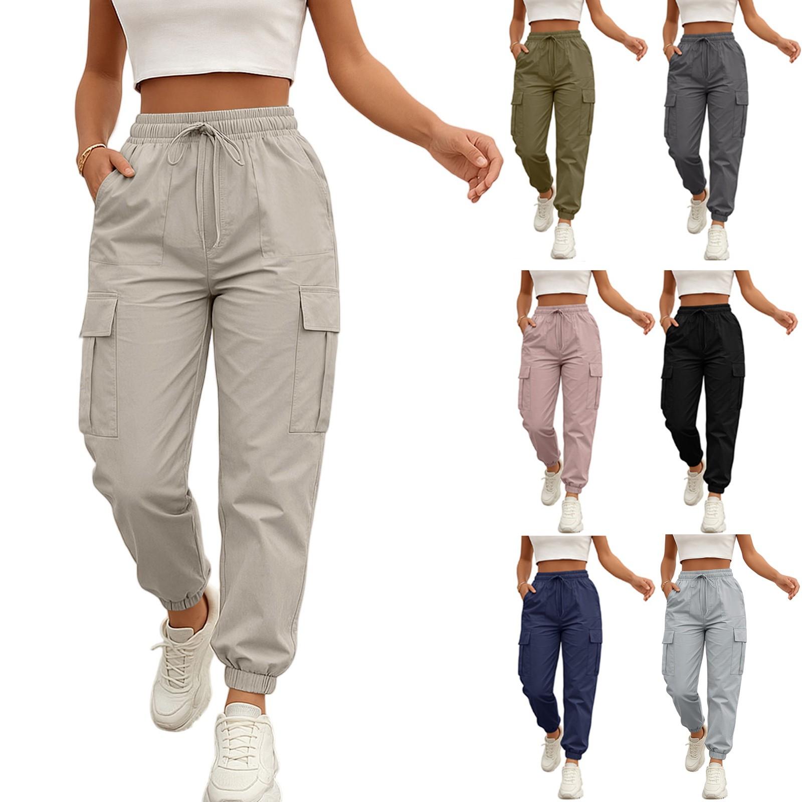 Damen Casual Cargo Hose Einfarbig Jogger mit Kordelzug in der Taille, Elastischer Bund, Mehrere Taschen Hose cm hellblaue