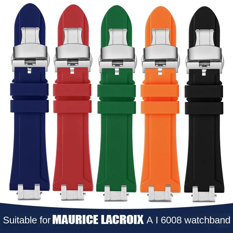 For MAURICE LACROIX AIKON Gummireimkobling AI6008 6038 6007 Armbånd Hurtigkobling Metall Stålhode Silikon Klokkereim