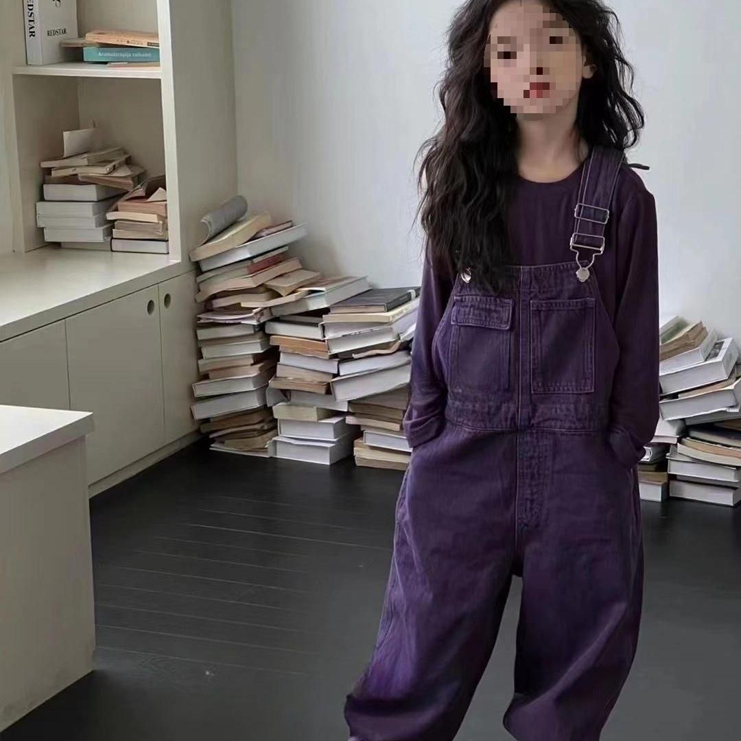 Koreanske avslappede denim-overalls for barn i lilla - Vasket bukser med rette ben for gutter og jenter, høststil 130cm