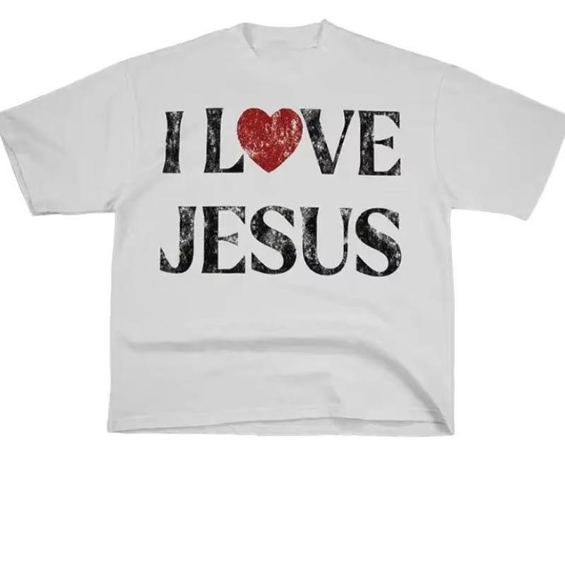 Vintage I Love Jesus Print Kurzarm T-Shirt Herrenoberteil Unterwäsche T-Shirt Baumwolle Polyester, Damen Buchstabenprint Rundhals cm