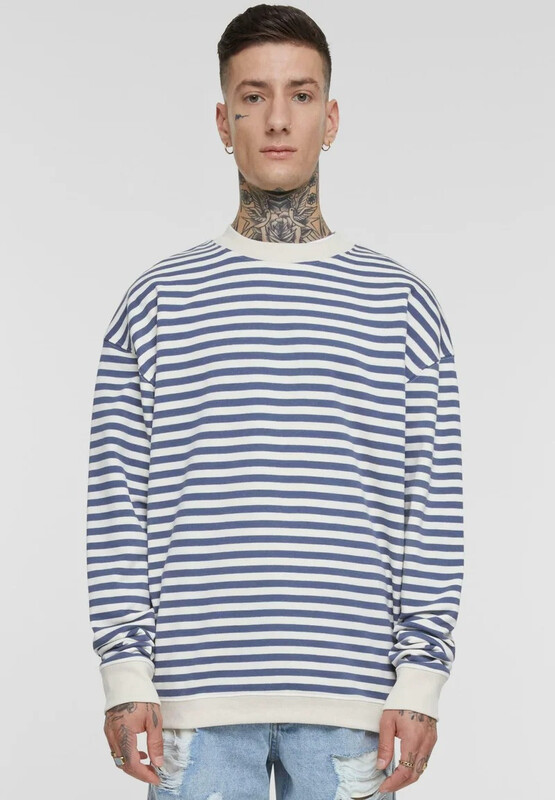 Urban Classics Streifiges Crew-Shirt White Sand/Vintage Blue S