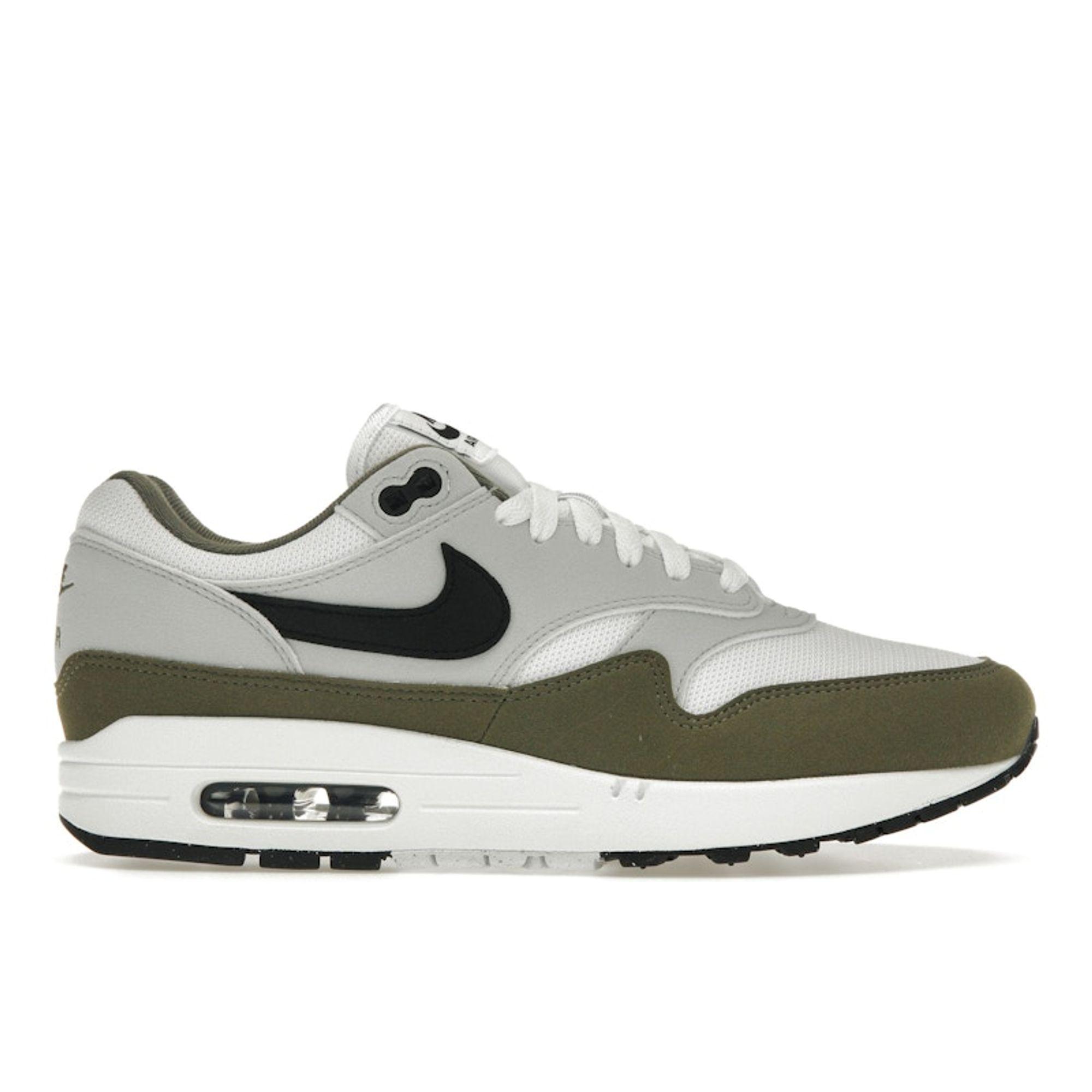 Baskets Nike Air Max 1 Medium Olive Homme Blanc Noir Platine Pur FD9082-102 cm