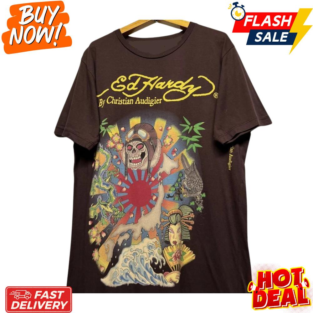 Gjenutgivelse Ed Hardy av Christian Audigier Svart Grafisk Unisex T-skjorte KH10179 Unisex T-skjorte cm
