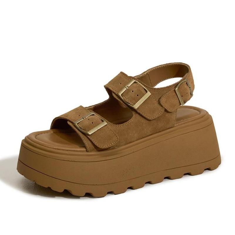 Mote Høy kvalitet 7CM Semsket Skinn Høy Merke Plattform Kile Flat Sommer Chunky Joggesko Sandaler Komfortable Åpen Tå Mote Sko Dame cm