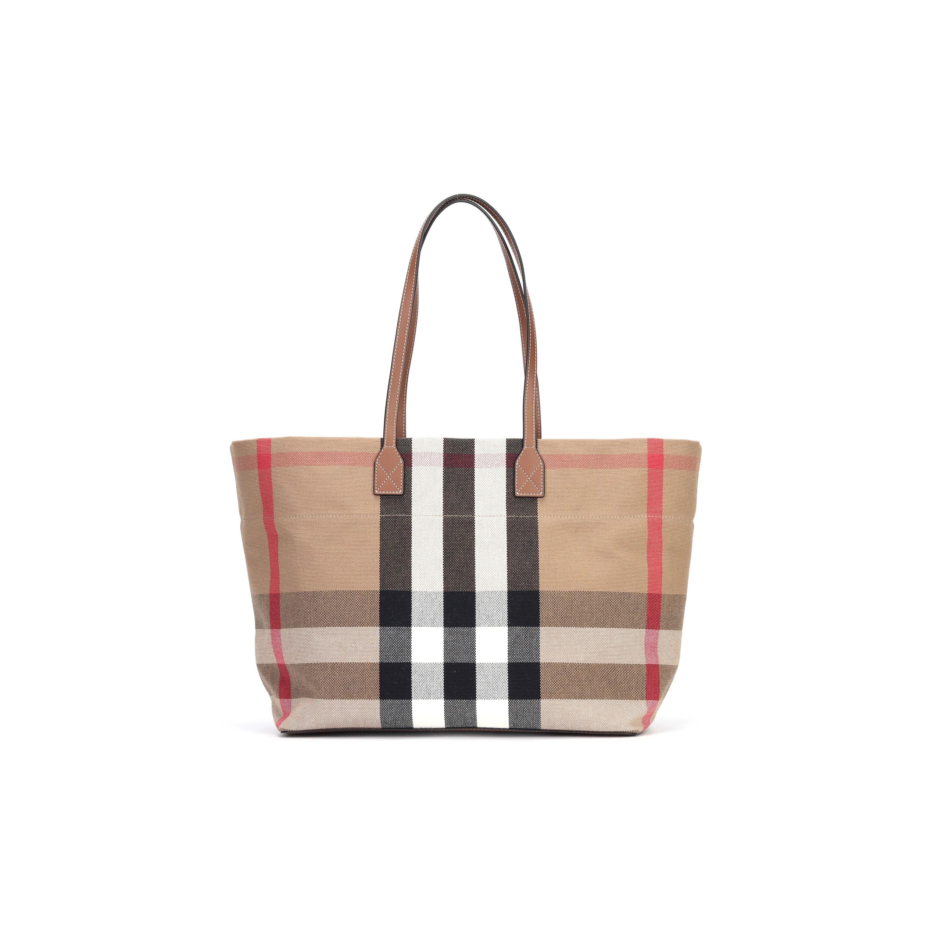 Sac Cabas Burberry à Carreaux Rayés Poignée en Coton Sac à Bandoulière Style Femme Marron Bouleau marron