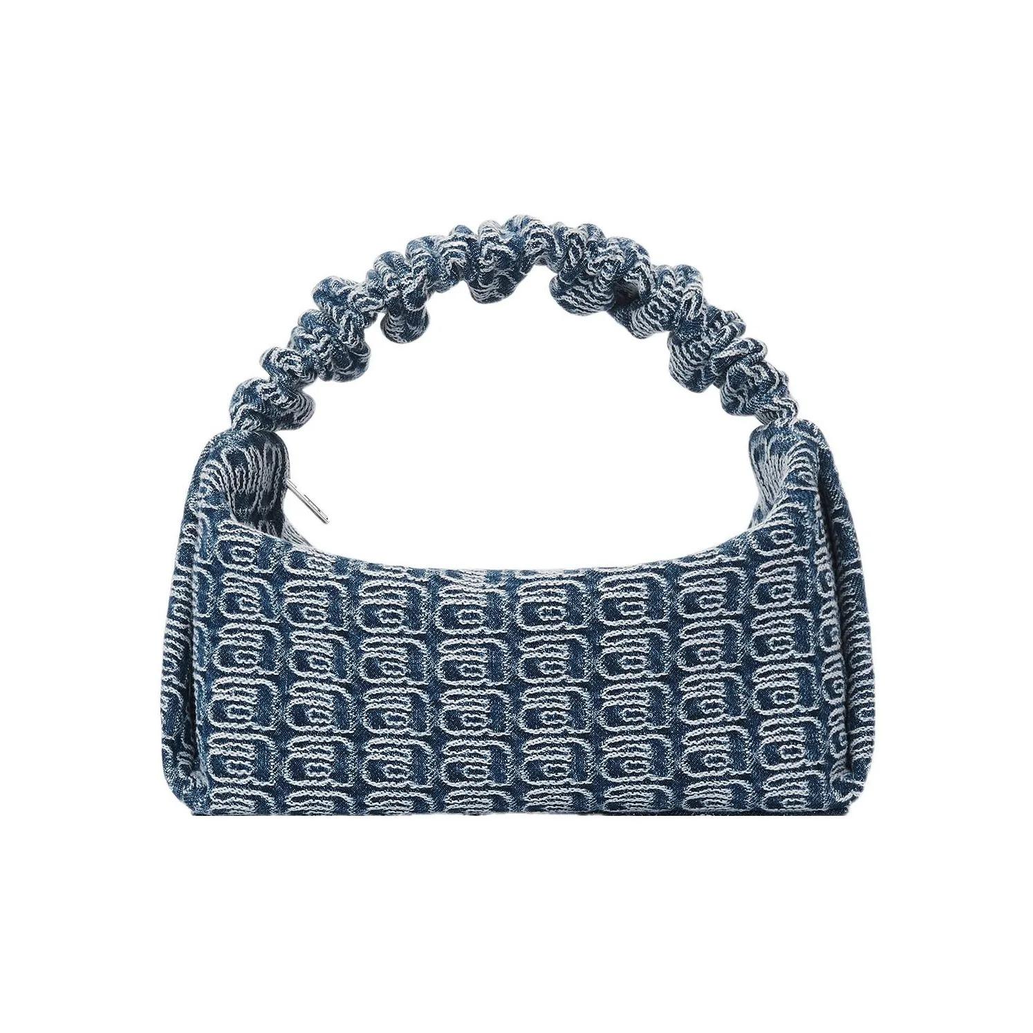 Alexander Wang Hårstrikk Signaturlogo Glidelåslukking Jacquard Bomullsdenim Håndveske Liten Størrelse Dame Indigoblå Blå