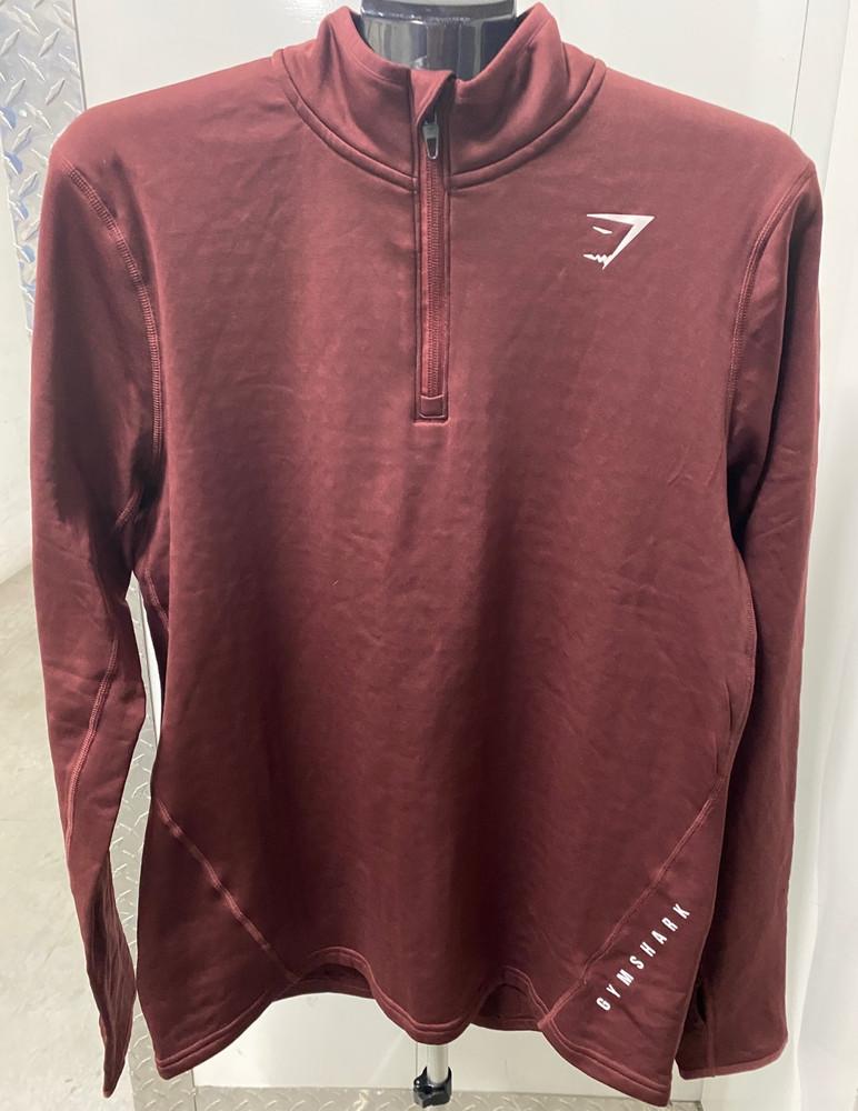 GYM SHARK Dam 1/4 Zip Vinröd Tröja Våfflad Fleece Tumhål Storlek L Unisex T-shirt cm