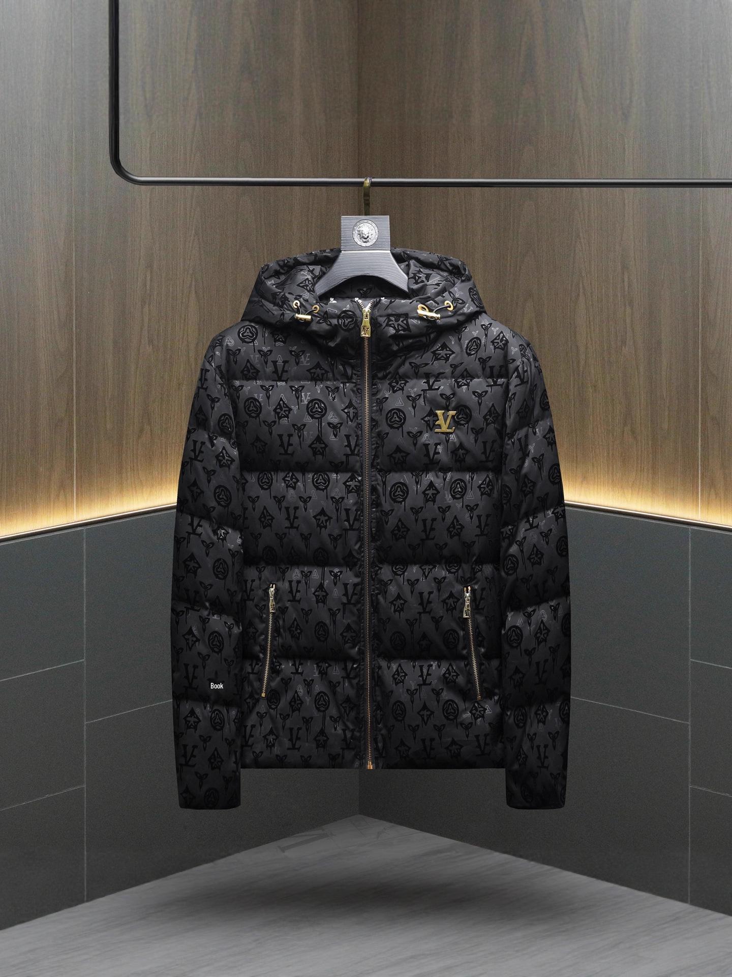 European Trendy Brand Men's Winter Thick Hooded Duck Down Jacket - Light Luxury Printed Design cm black