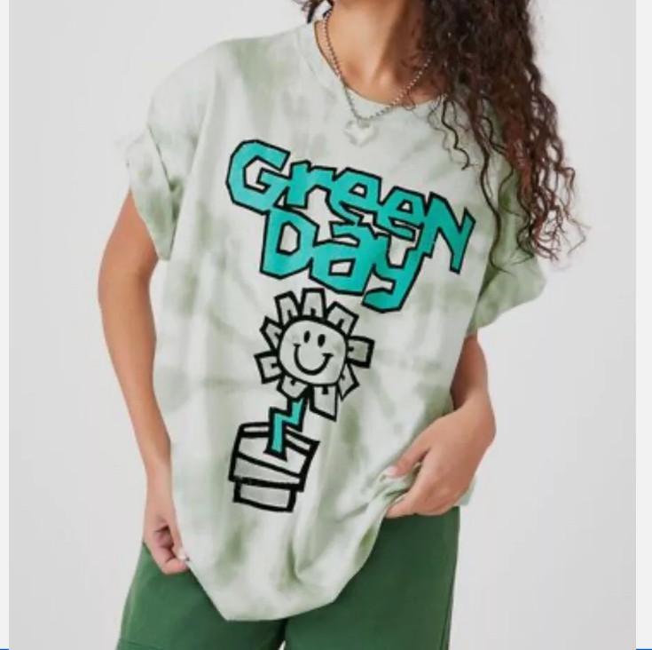 26 Green Day Band Kerplunk Flower T-Shirt Green Oversized Tie Dye double sided New Unisex T-Shirt cm