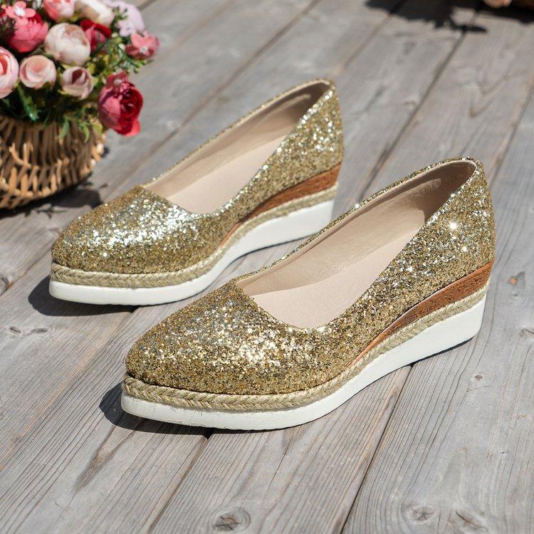 Avslappede store dame sko med paljetter og platå høst nye dame komfortable myk såle kile enkeltsko dame cm gull