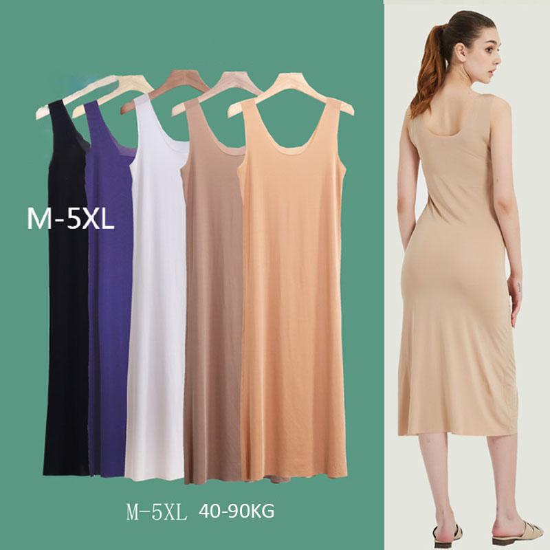 Plus Size Seamless Full Slips Dresses for Women Summer Ice Silk Cool Petticoat Underkirt Sleeveless Underwear Slips Dress M-5XL cm blue