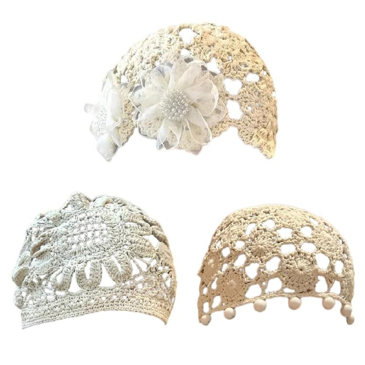 Heklede Luer Hat for Kvinner Jente Håndlaget Blomsterhatt Elegant Utskåret Skallehatt Pulloverhatt Strikket Lue Hodepynt