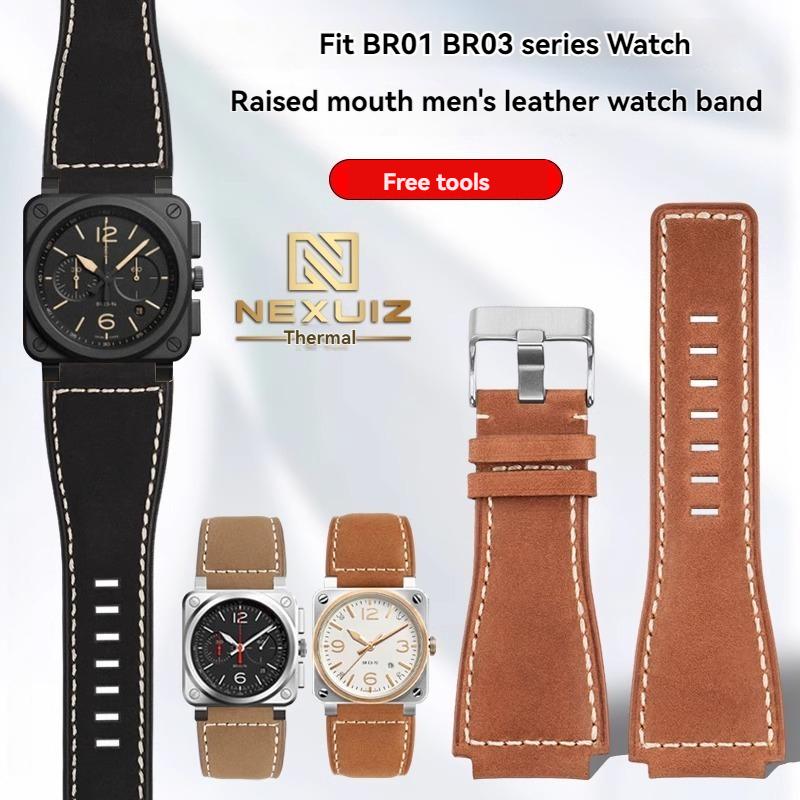 Pour Bell Ross BR Bracelet de montre BR01 BR03 Hommes Cuir de vachette Vintage Bracelet de montre 24mm Bracelet de montre en veau Noir Marron Bracelet