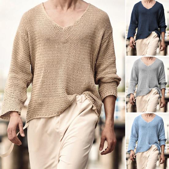 Heren Trui V-hals Gemakkelijk te Combineren Ademend Elastisch Comfortabel Gebreid Lange Mouwen Losse Pullover Herfsttrui Herenkleding cm grijs