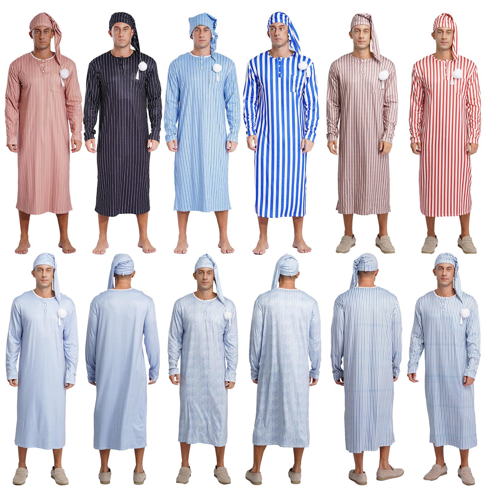 Herre Sissy Nattøy Stripete Nattkjole Langermet Lang Kappe Dusker Justerbar Nattlue Arabisk Pyjamas cm