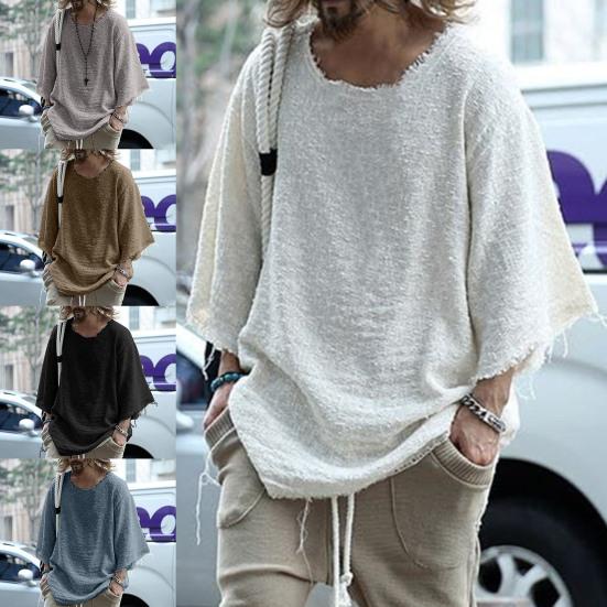 T-shirt Homme Couleur Unie Ample Streetwear Manches Longues Bord Effiloché Haut pour Rendez-vous cm beige