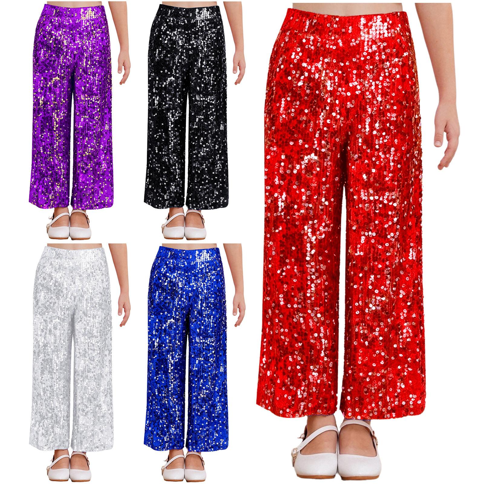Pantalon à paillettes intégrales pour filles Taille élastique Coupe ample Entièrement doublé pour la scène de danse cm noir