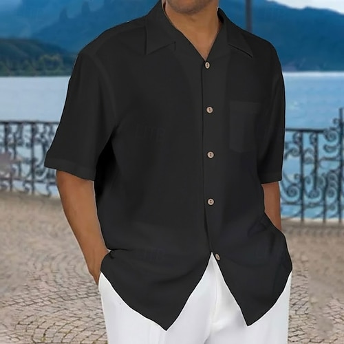 Per uomo Camicia Camicia Estiva Camicia casual Camicia da Spiaggia Camicia con Bottoni Blu Nero Bianco Rosa Verde Manica Corta Semplice Collo ripiegato Quotidiano Vacanza Tasca Frontale Abbigliamento