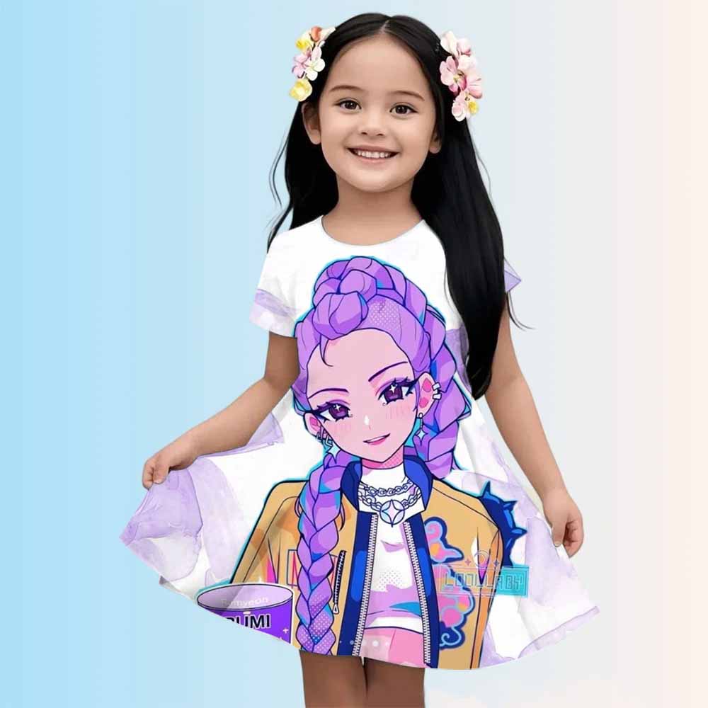 Robe 3D KPop Chasseuse de Démons pour Fille Nouvel Été Lin Mignon Décontracté Mode Meilleure Vente pour Enfants cm