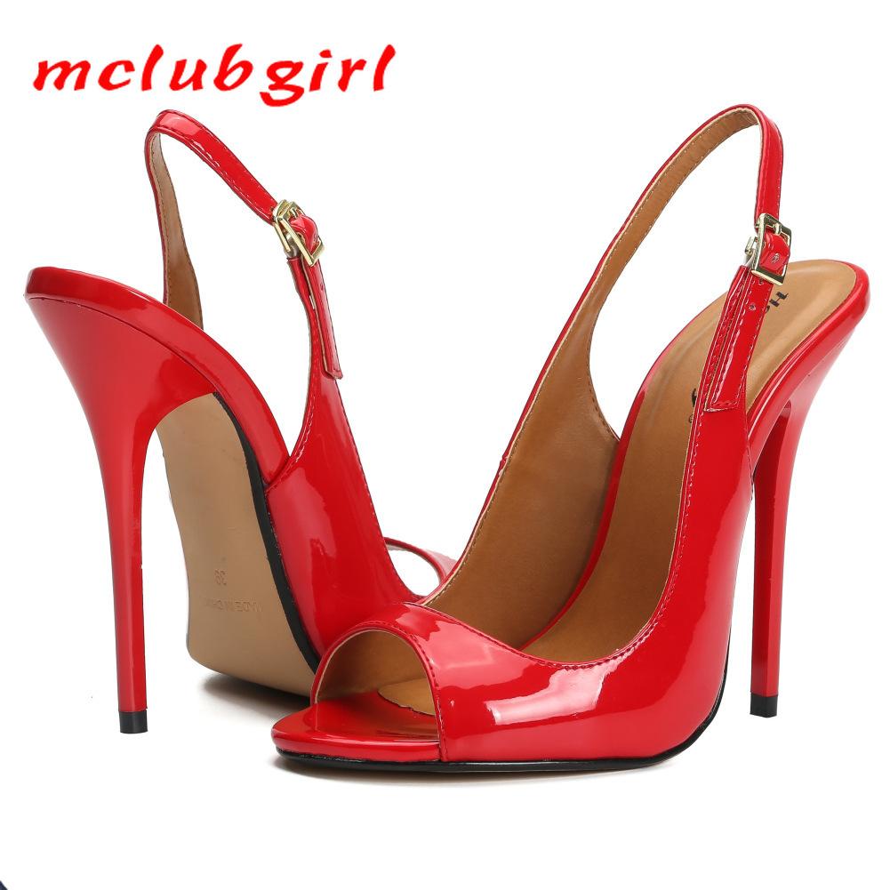 LOSLANDIFEN Sexy Peep Toe Platform Women Pumps 14cm Super High Patent Leather Heels Shoes Red Wedding Stilettos Large Size 43 44 cm red