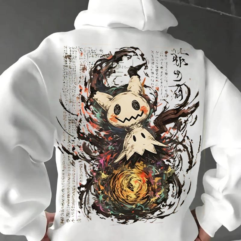 Pokémon Mimikyu Kunsttrykk Hettegenser for Menn og Kvinner 2025 Høst/Vinter Ny Y2K Harajuku Plussstørrelse Avslappet Genser Topp cm