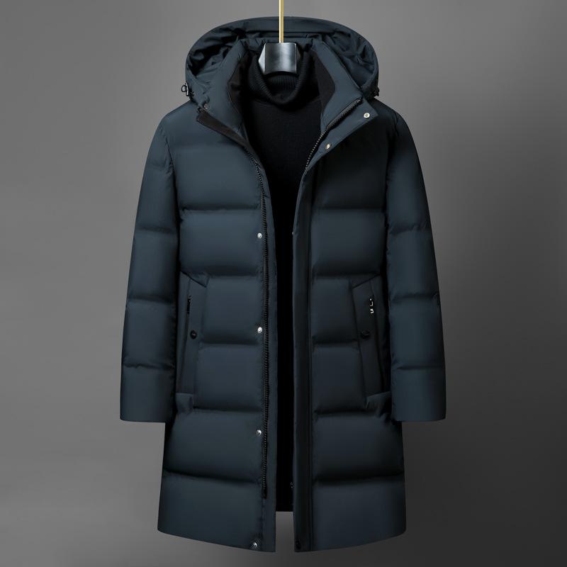 Fashion Winter Jacket for Men Down Coat Parka Men's White Goose Down Jacket Collar Hooded Warm Thick Long Padding cm navy blue