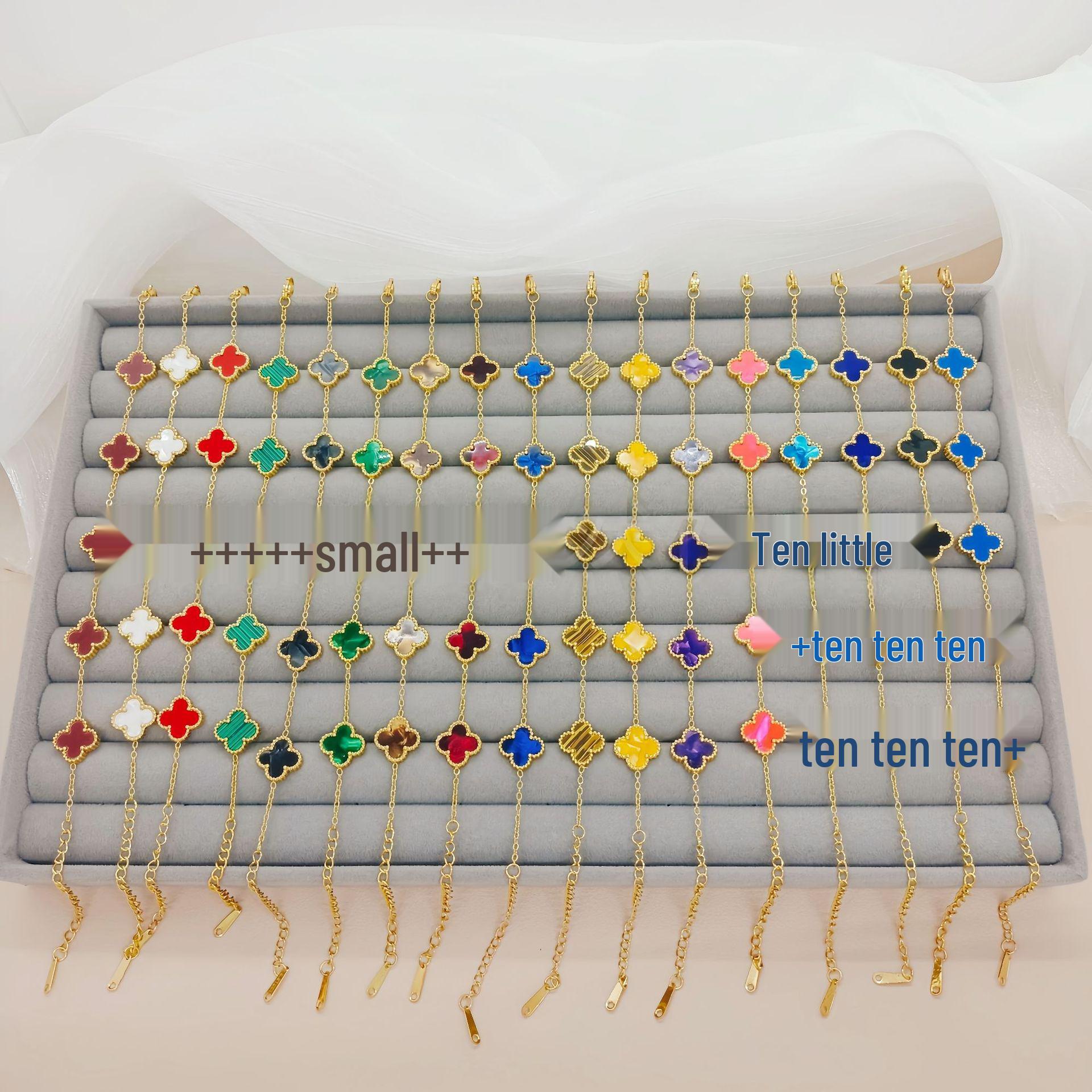 Gold-Plated Stainless Steel Four-Leaf Clover Bracelet - 13mm, Fashionable Color-Retention Jewelry