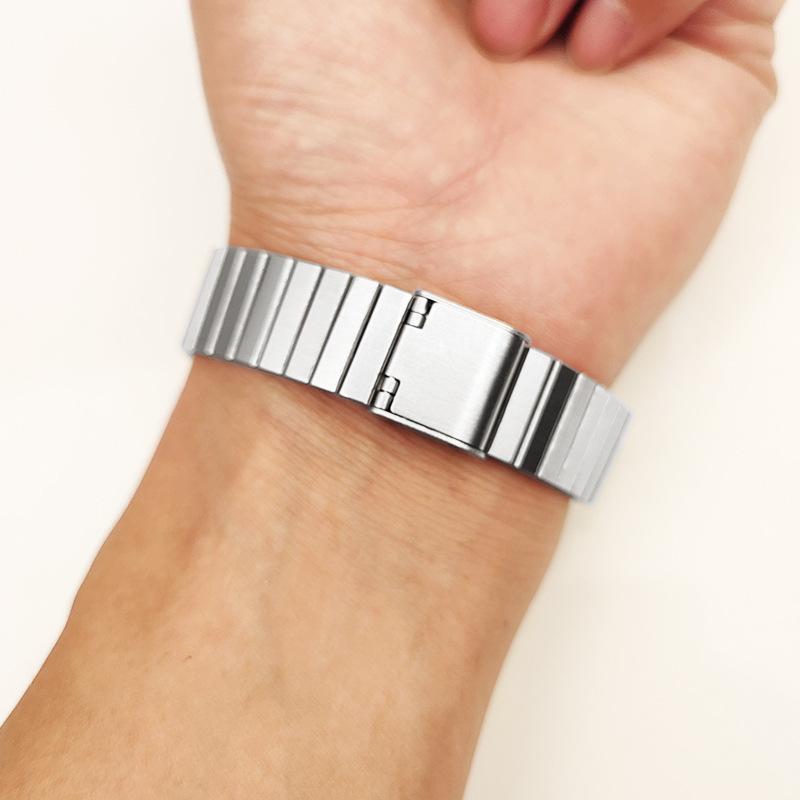 Erstatningsreim i rustfritt stål for klokkemodellene A158/A159/A168/F91/W-217 sølv
