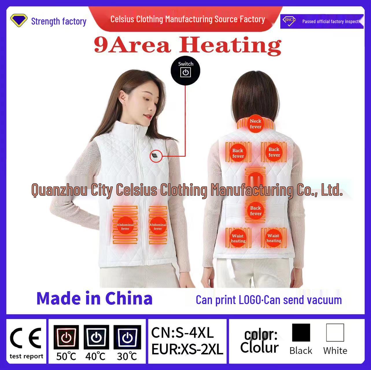 USB-Charged Smart Heating Vest with Adjustable Size for Men & Women - Dual Control, Nine-Zone Winter Warmth cm white