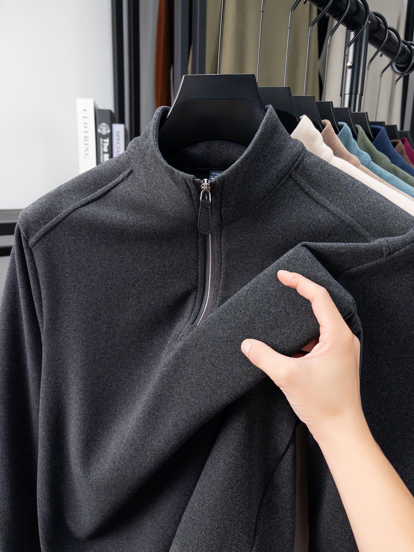 Men’s Thick Self-Heating Double-Sided Fleece Half-Zip Long-Sleeve Base Layer for Autumn/Winter cm