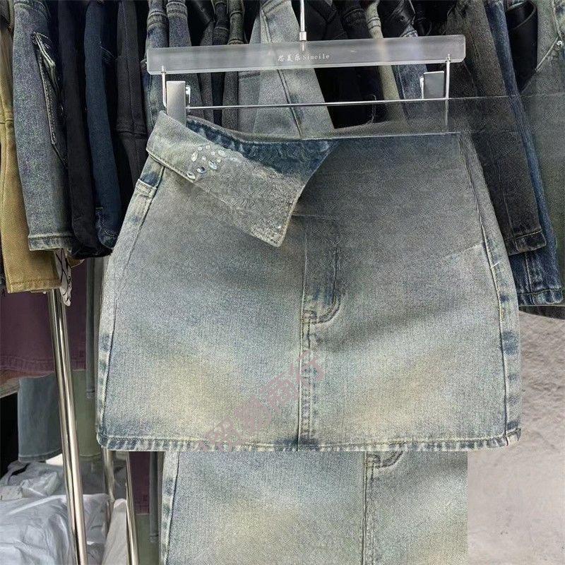 Vielseitiger Amerikanischer Retro Hellblauer Jeansrock mit Strassstein-Buchstabenstickerei cm hellblaue