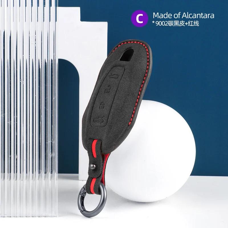 For Porsche Macan 4 EV Electric model 2024 2025 Taycan 2022 Key Shell Accessories Alcantara Suede Key Fob Cover with Keychain