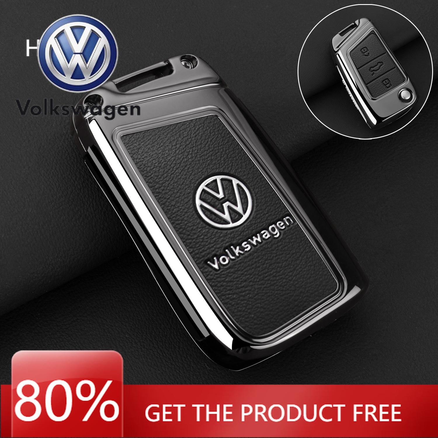 For VW zinc alloy Leather Car Key Case Protection Cover shell fob for VW Volkswagen Golf 7 MK7 Tiguan MK2 T-roc T-cross Access
