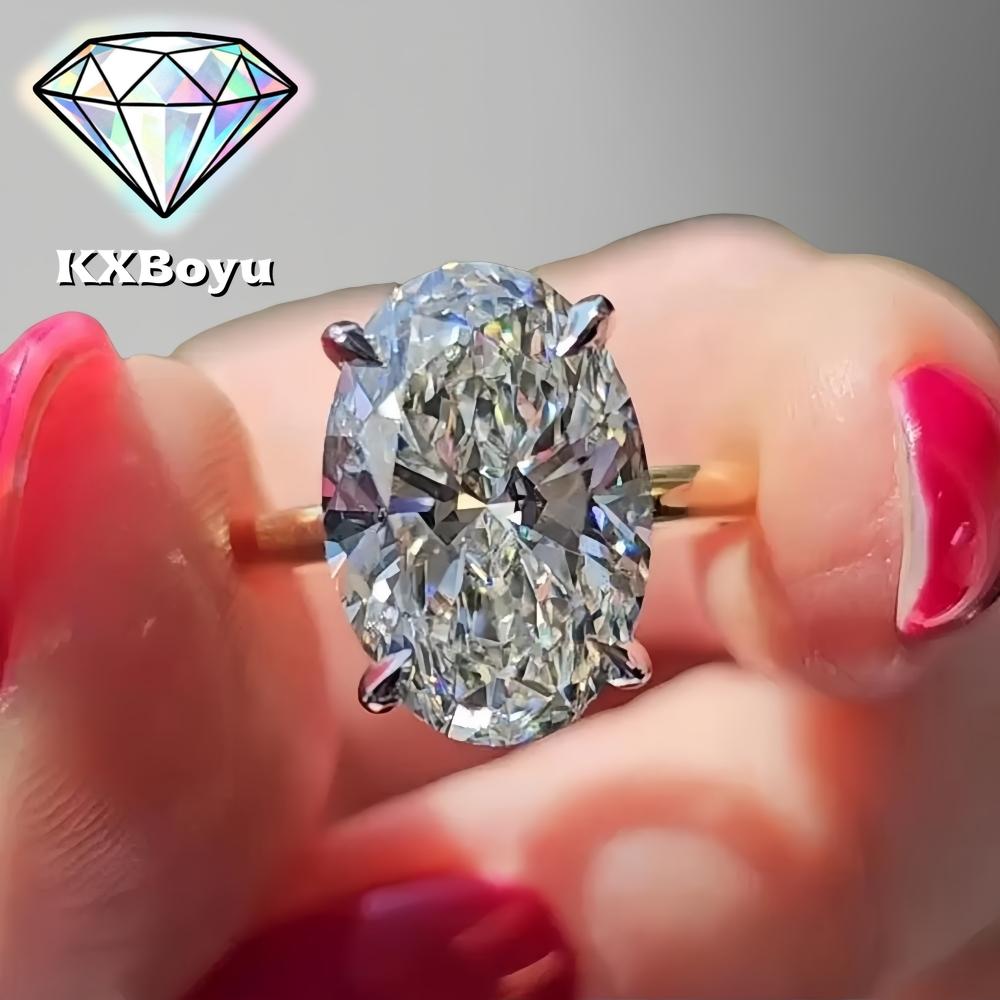 1-8 Karat Oval Slipt Moissanitt Forlovelsesring Oval Form Skjult Halo Bryllupsring for Kvinner 925 Sølv med